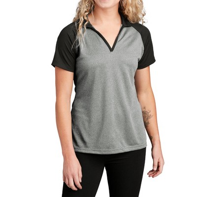 Mafoose Women's Short Sleeve RacerMesh Raglan Heather Block Moisture-Wicking Polo T-shirt