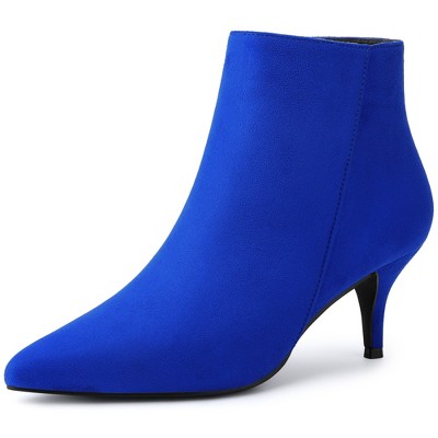 BLISSFUL STEP Women's Pointed Toe Zip Stiletto Kitten Heel Ankle Booties