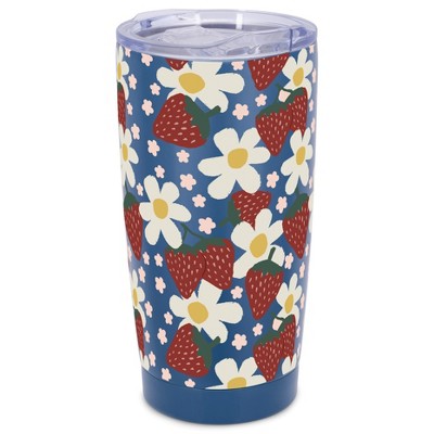 Elanze Designs 20 oz Stainless Steel On the Go Insulated Travel Tumbler With Push Top Lid, Berry Red Cheetah Leopard Print Sky Blue
