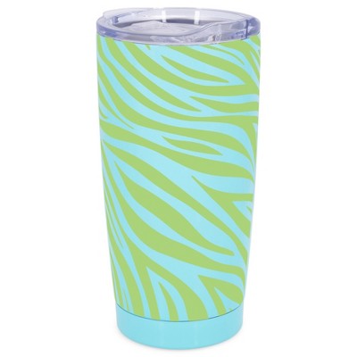 Elanze Designs 20 oz Stainless Steel On the Go Insulated Travel Tumbler With Push Top Lid, Lime Green Zebra Print Sky Blue