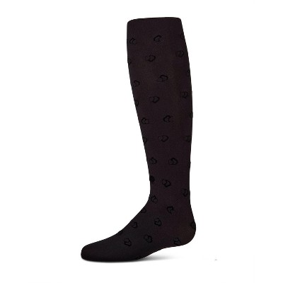 Memoi Girls Opaque "Overlapped Heart" Flocked Tights