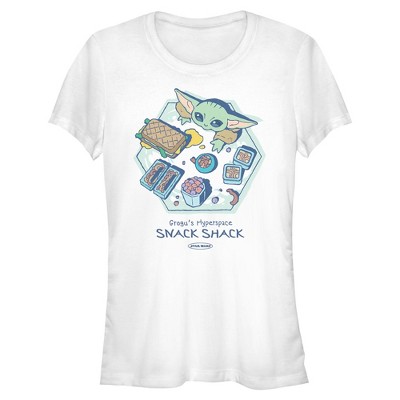 Juniors Star Wars: The Mandalorian and Grogu The Child Hyperspace Snack Shack T Shirt - White - X Large