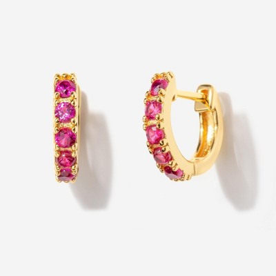 Bella Silver Sterling Silver, 'July' Rectangle CZ Charm Hoop, Gold Plated Earrings - Ruby - Red