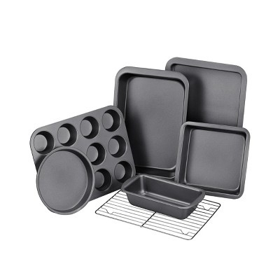 Itopfox 7-Piece Nonstick Bakeware Set with Round & Square Cake Pan, Loaf Pan, Muffin Pan, Cookie Sheet, Roast Pan, Cooling Rack