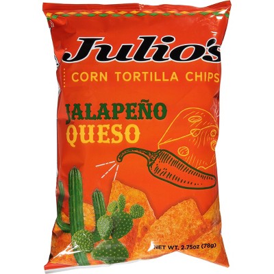 Julio's Corn Tortilla Chips, Jalapeno Queso - Case of 10 - 2.75 oz