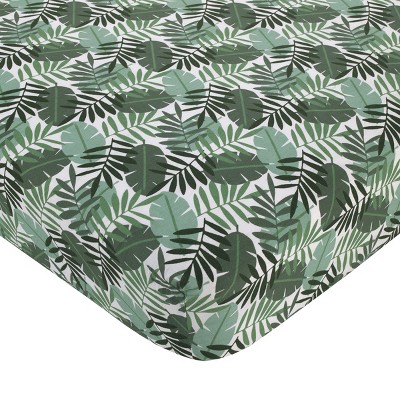 NoJo Jungle Paradise Green and White Palm Leaf 100% Cotton Fitted Crib Sheet