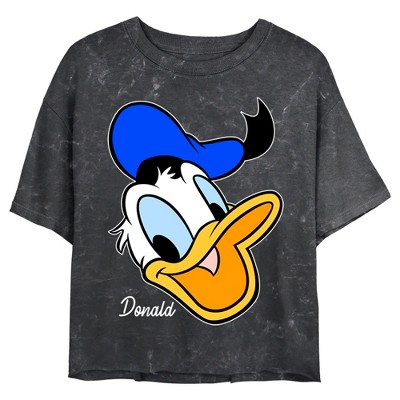 Juniors Womens Mickey & Friends Donald Duck Big Face Mineral Wash Crop T-Shirt