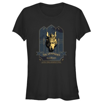 Juniors Womens Hogwarts Legacy The Graphorn Logo T-Shirt
