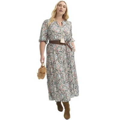 Women's Plus Size Flirty Tier Print Maxi Dress - white | CITY CHIC