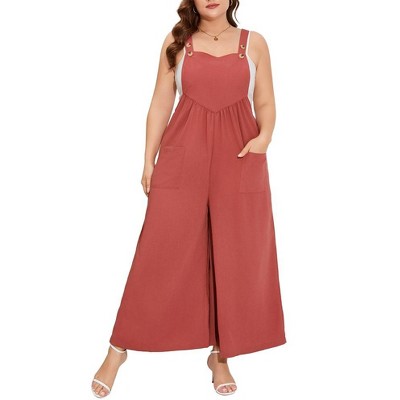 Women's Plus Size Loose Sleeveless Jumpsuits Adjustable Spaghetti Strap Stretchy Long Pant with Pockets