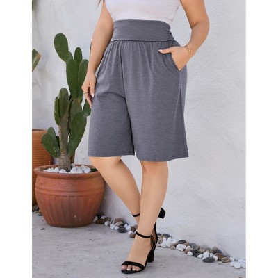 Plus Size Women's Bermuda Shorts Cotton Drawstring High Waisted Casual Athletic Sweatpants Shorts with Pockets