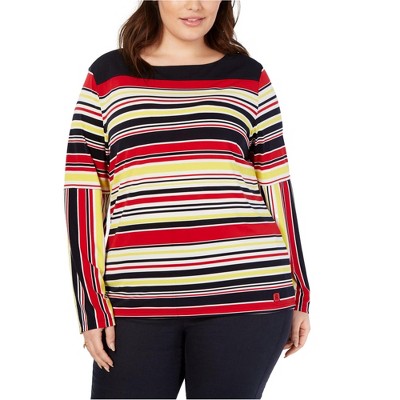 Vince Camuto Womens Stripe Faux Wrap Pullover Blouse