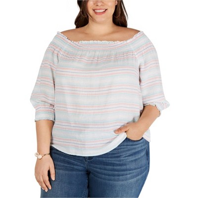 I.N.C International Concepts Womens Smocked Off the Shoulder Blouse