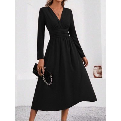Women's Floral Print Midi Dress - V-Neck Long Sleeve Elastic Waist Flowy Maxi Dress with Ruffle Hem