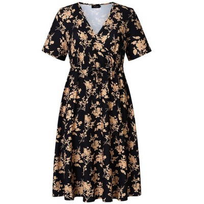 Plus Size Dress Women's Plus Size Floral Square Neck Dress Short Puff Sleeve Ruffle Hem Knee Length Mini Dresses