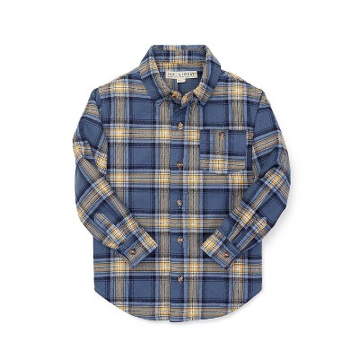 Deux par Deux Boy Long Sleeve Flannel Shirt Blue and Brown Plaid