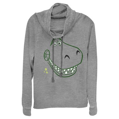 Juniors Womens Toy Story Grinning Rex Face Cowl Neck Sweatshirt