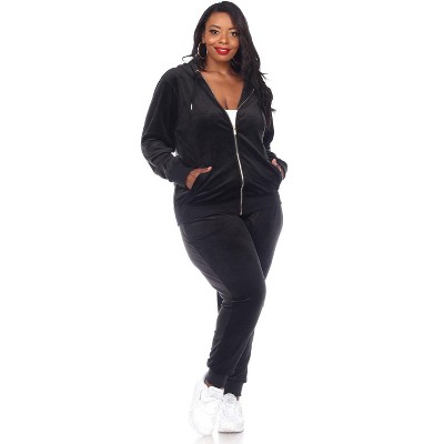 Women's Plus Size 2 Piece Velour Tracksuit Set - White Mark