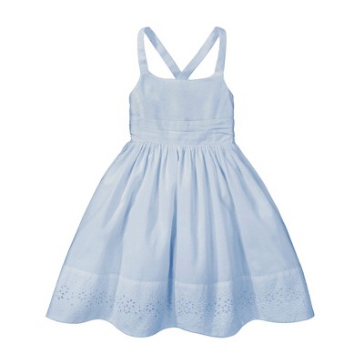 Hope & Henry Girls' Sleeveless Special Occasion Sun Dress with Bow Back Detail and Embroidery, Kids