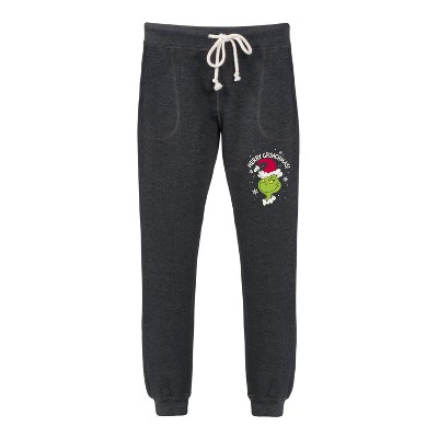 Women's The Grinch Merry Grinchmas Snow Flakes Graphic Fleece Joggers - Heather Charcoal - Small