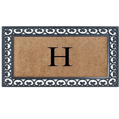A1HC Natural Rubber & Coir 30x48, Monogrammed Doormat For Outdoor Entrance, Anti-Shed Treated Mat