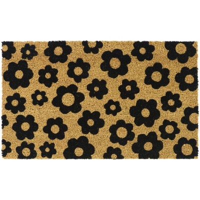 HomeRoots 18" X 30" Beige and Black Rubber and Coir Outdoor Door Mat