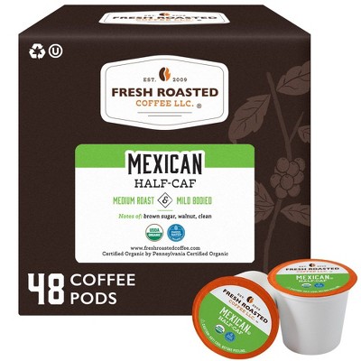Fresh Roasted Coffee - 48 CT Organic Mexican SW Half Caf Medium Roast Single Serve Pods