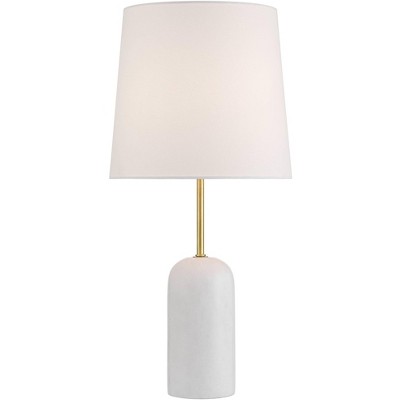 360 Lighting Ben 25" High Small Cylinder Modern Glam Table Lamp White Marble Finish Single Black Shade Living Room Bedroom Bedside Nightstand House