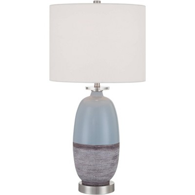 360 Lighting Ronald Modern Coastal Accent Table Lamp 22" High Blue Textured Glass Nickel Pole White Drum Shade for Bedroom Living Room Nightstand
