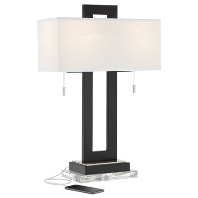 360 Lighting Marcel Industrial Table Lamps 24 1/4" High Set of 2 Black with USB Port LED Nightlight Burlap Drum Shade for Bedroom Living Room Desk