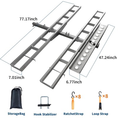 Duty Motorcycle Carrier Hitch Rack 600LB Capacity with Arched Non-Slip Ramp, Anti-Wobble System