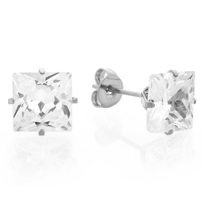 10k Solid Gold Princess-cut CZ Basket Stud Earrings
