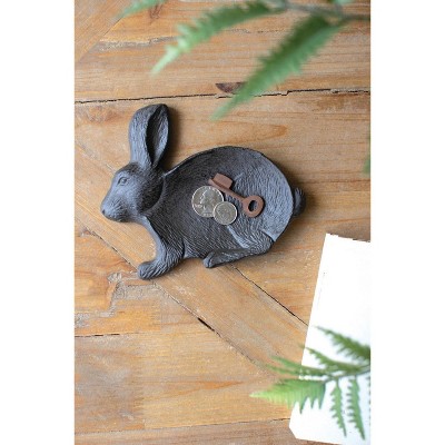 Cast Iron Easter Rabbit Trinket Tray – 6"L Brown Matte Spring Decor By Kalalou
