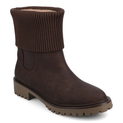Journee Women's Isabeau Medium and Wide Width Knit Collar Chelsea Boots