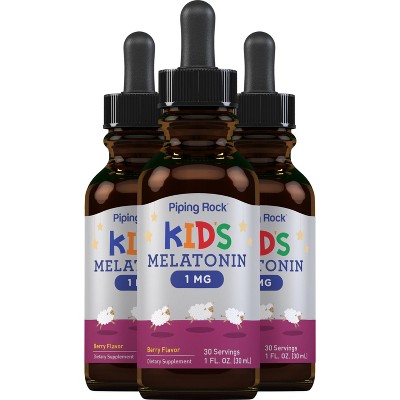 Piping Rock Kids Melatonin Liquid 1 fl oz | 1mg | Pack of 3 Bottles | Berry Flavor Drops