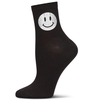 Memoi Women's Smiley Terry Patch Stripe Crew Socks