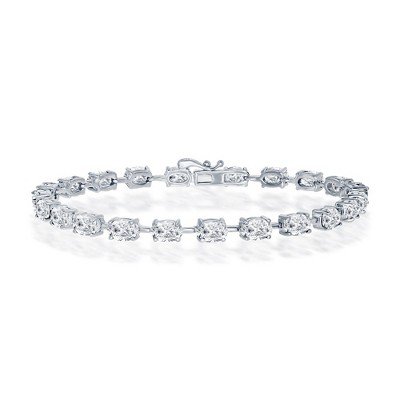 Bella Silver Sterling Silver Byzantine Design CZ Bracelet - Silver - 8 Inch