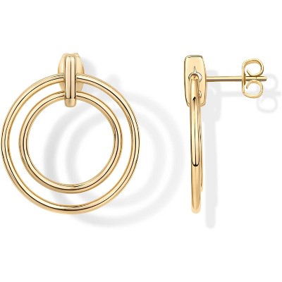 18K Gold Plated Statement Door Knockers Stud Earrings for Women | Interlock Ring Dangle Earrings
