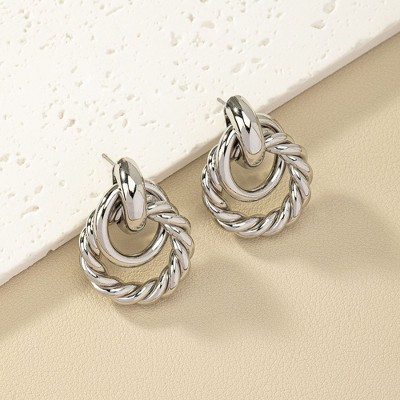 Black Bow Jewelry Oval and Circle Link Dangle Post Earrings in Sterling Silver