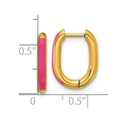 Chisel Stainless Steel Yellow IP-plated with Pink Enamel 2.40mm Elongated Hinged Hoop Earrings