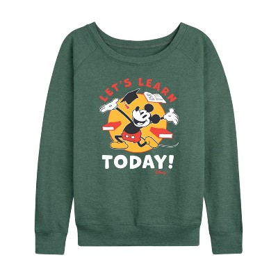 Women's - Disney - Lets Learn Today Lightweight French Terry Wide Neck Long Sleeve Graphic Shirt