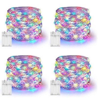 Multi-Colored 4 Pack Total 80FT 240LED Battery Operated Silver Wire Fairy Lights