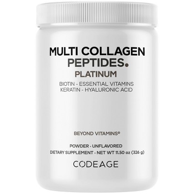 Codeage Platinum Multi Collagen Peptides Powder, Biotin, Vitamin C, Keratin, Hydrolyzed Collagen Protein - 11.50 oz