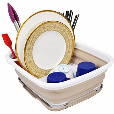 SAMMART 8L (2.1 gallons) Collapsible Plastic Dish Drainer with Drainer Board - Foldable Drying Rack Set