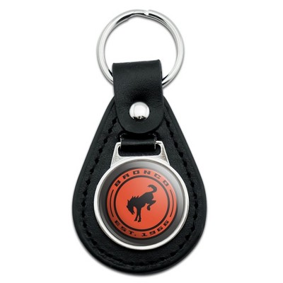 Ford Bronco Round Badge Distressed Black Leather Keychain
