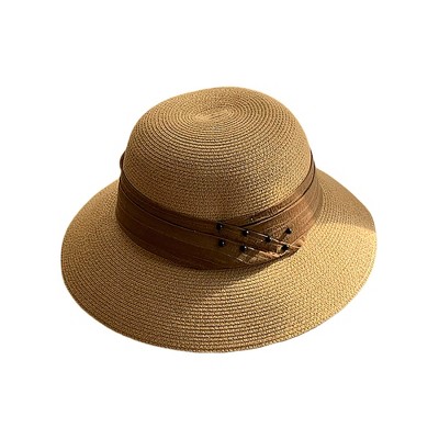Anna-Kaci Womens Straw Bucket Hat Breathable Woven Sun Hat Lightweight Packable Summer Beach Hat, Khaki