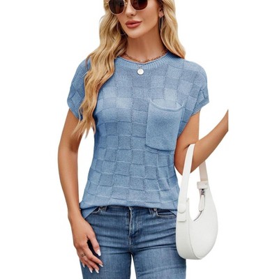 Clearlove Womens Short Sleeve Sweaters Tops V Neck Lapel Cable Knit Sweater Casual Pullover Shirt