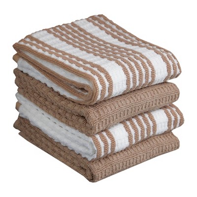 T-fal Solid and Stripe Waffle Kitchen Towel Four Pack