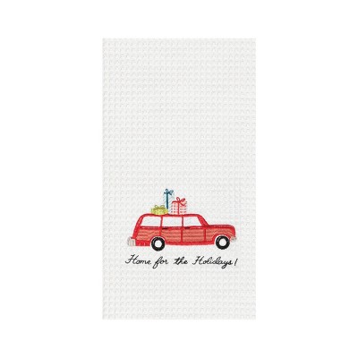 C&F Home 27" x 18" "Home For Holidays" Sentiment with Red Station Wagon Car Cotton Embroidered & Waffle Weave Kitchen DIsh Towel