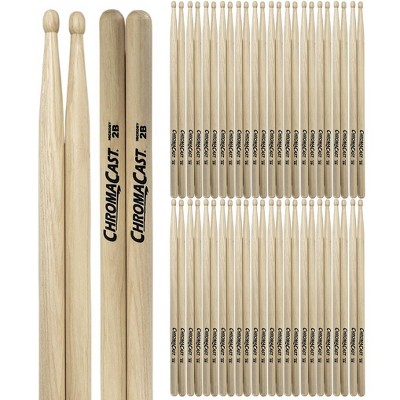 ChromaCast 2B USA Made Hickory Drumsticks Pair - Wood Tipped - Drum Sticks Tour Tested by Pro Drummers - Real American Hickory Wood